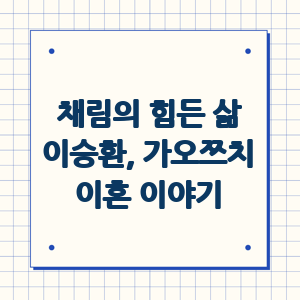 채림의 첫 번째 남편은 가수 이승환이었고, 두 번째 남편은 중국 배우 가오쯔치였습니다. 이승환과는 3년 만에 이혼했고, 가오쯔치와는 6년 만에 이혼했습니다. 이번 예능에서 채림은 두 전 남편과의 관계와 이혼 과정에 대해 솔직하게 털어놓았습니다.