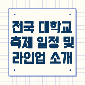 대학 축제는 학생들에게 소중한 추억을 선사하고, 다양한 문화를 경험할 수 있는 기회를 제공합니다. 2024년에도 전국 각지의 대학교에서 화려한 라인업과 다채로운 프로그램이 준비되어 있습니다.