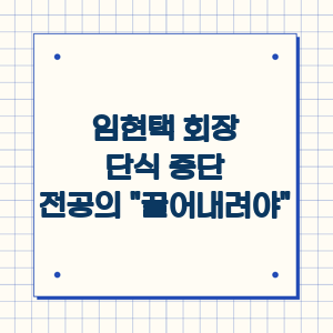 임 회장의 단식 중단 소식에 전공의 대표는 강경한 반응을 보였습니다. 대한전공의협의회(대전협) 비상대책위원장 박단 씨는 임 회장의 자진 사퇴를 요구하며 "임 회장과 집행부는 해야 할 역할이 있지만, 감당하지 못하고 있다"고 비판했습니다.