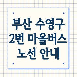 2번 마을버스는 수영구 내 주요 지점을 순환하며, 지역 간 연계성을 높이고 있습니다. 이를 통해 주민들은 보다 편리하게 일상생활을 영위할 수 있습니다.