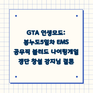 GTA 인생모드 게임에서 벌어진 일련의 사건들은 과연 어떤 결과를 초래했을까요? 봉누도 5일차에 일어난 EMS 공무직들의 블러드 나이팅게일 갱단 창설 사건은 강지님에게 어떤 영향을 미쳤을까요?