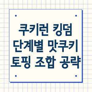 이와 같은 토핑 조합을 통해 단계화맛 쿠키의 공격력과 치명타 딜링을 극대화할 수 있습니다. 다만 생존력이 다소 약하기 때문에, 필요에 따라 피해 감소 옵션을 추가하는 것도 고려해볼 만합니다.