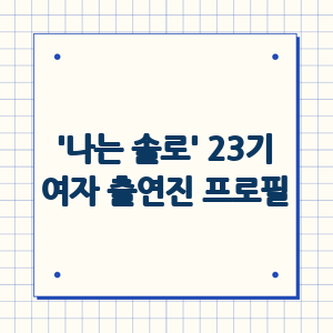 과연 어떤 매력적인 여성을 선택하실 것인가요? 'TV 속 연애'로 유명한 '나는 솔로' 23기 여자 출연진들의 프로필과 직업을 자세히 살펴보겠습니다.