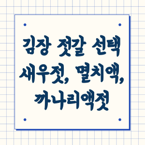 이번 김장 철, 어떤 젓갈을 선택하실 계신가요? 새우젓, 멸치액젓, 까나리액젓 중 어떤 것이 자신의 입맛에 가장 잘 어울릴지 고민해보시기 바랍니다.