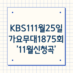 KBS1 가요무대 1875회는 2024년 11월 25일 월요일 밤 10시에 방송됩니다.